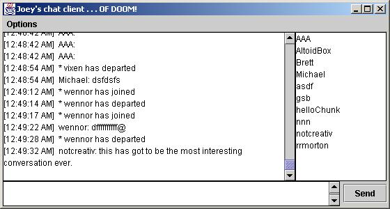 No, I didn't hardly work on my photoes with an 'e' section, but I got them organized on my hard drive so that I know what kind of pictures are where, now the task of putting them up in an interesting format. You know, with text that describes them. Who wants a bunch of pics of me and my friends with no narration as to tell what is happening? Bah! This seems to be more work than I had originally imagined, but for now, I think I'll look at my French for a little bit--until I get bored with it that is (I really hate studying like this, math isn't as bad because I get to do problems, but french, ugh, reading and memorizing stuff is not my idea of fun, but then again, neither is doing math).